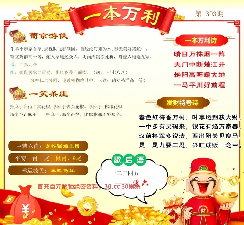 | 303期:单╠蛇兔鸡牛╣双╠鼠虎马龙╣开:兔15准 |